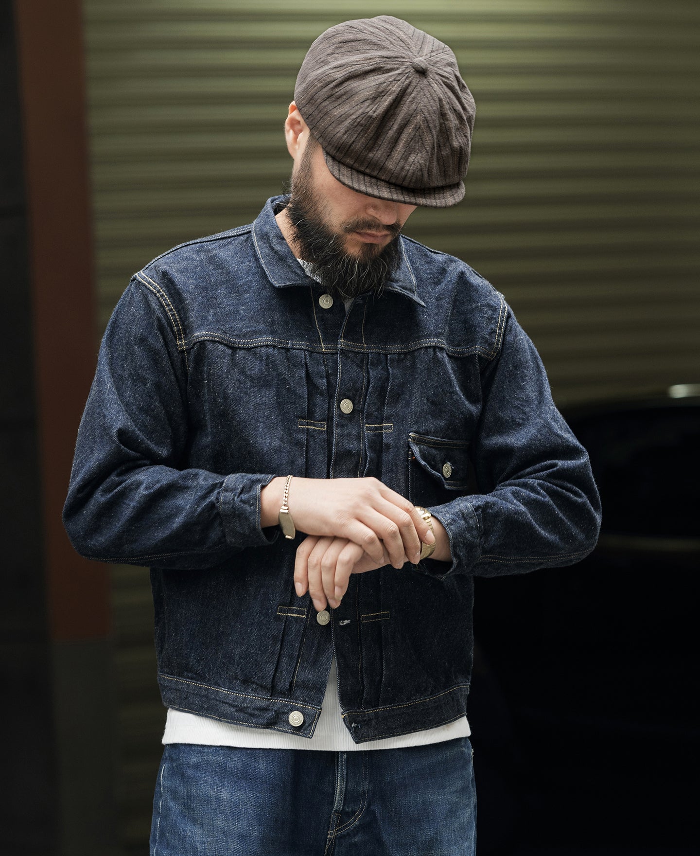 Yarn-Dyed Stripe Newsboy Cap - Brown