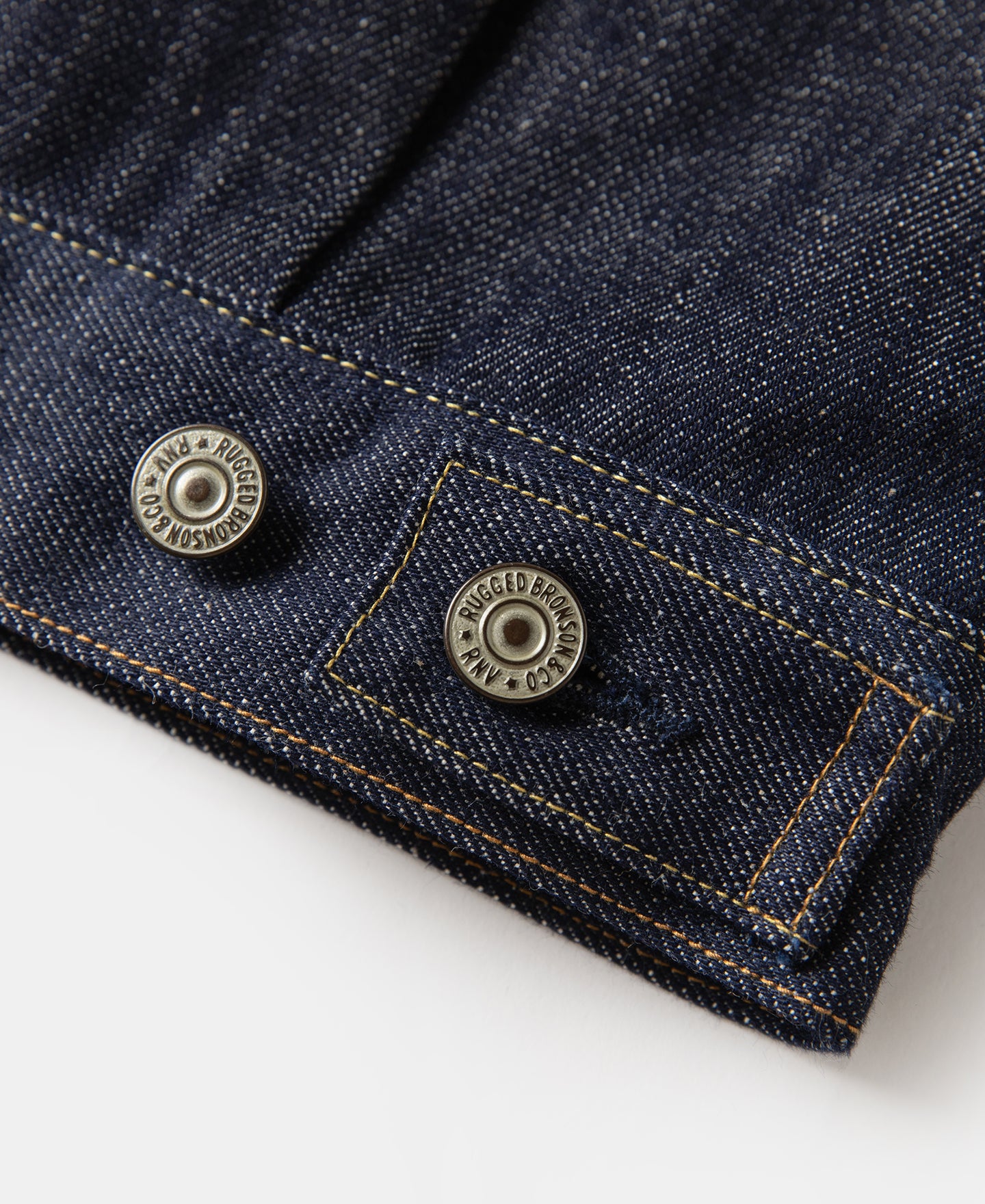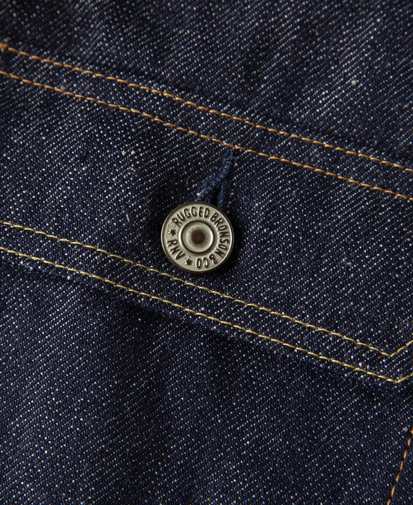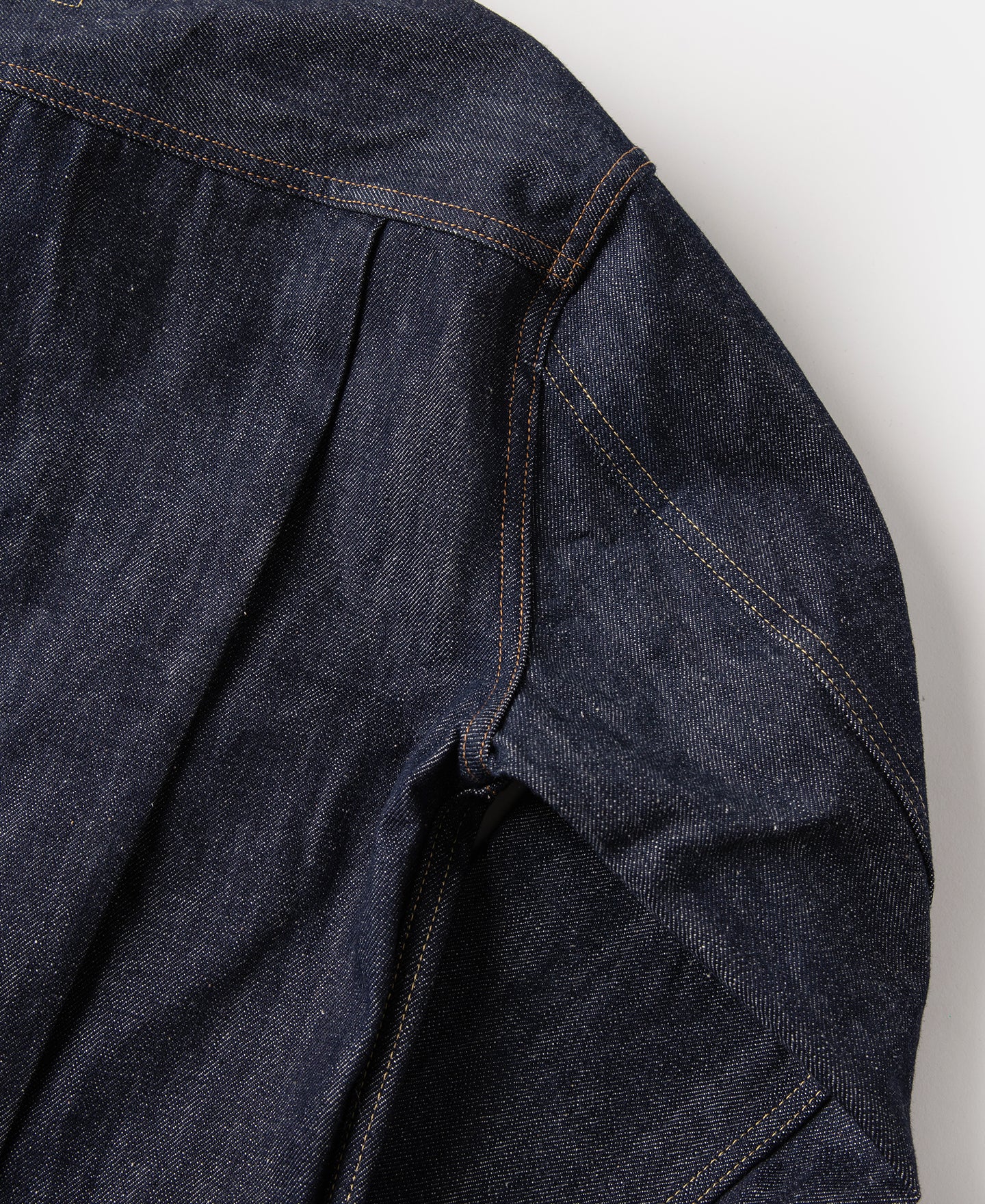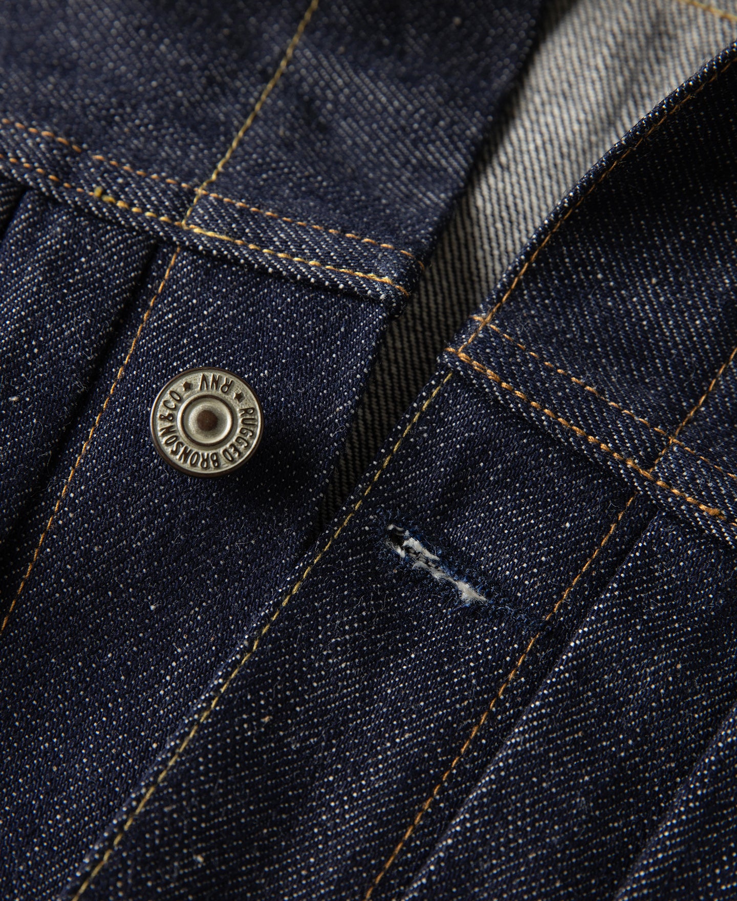 Inspired by the 1952 second-generation denim jacket, this reproduction features a trimmer, more fitted silhouette with two symmetrical chest patch pockets. The traditional back cinch has been removed and replaced with adjustable side tabs. A cardstock patch substitutes the leather patch of earlier models, while iron buttons and iron rivets complete the design, echoing the practical, utility-driven details of the era.