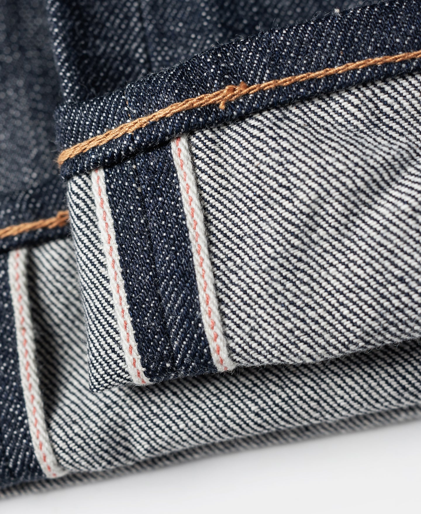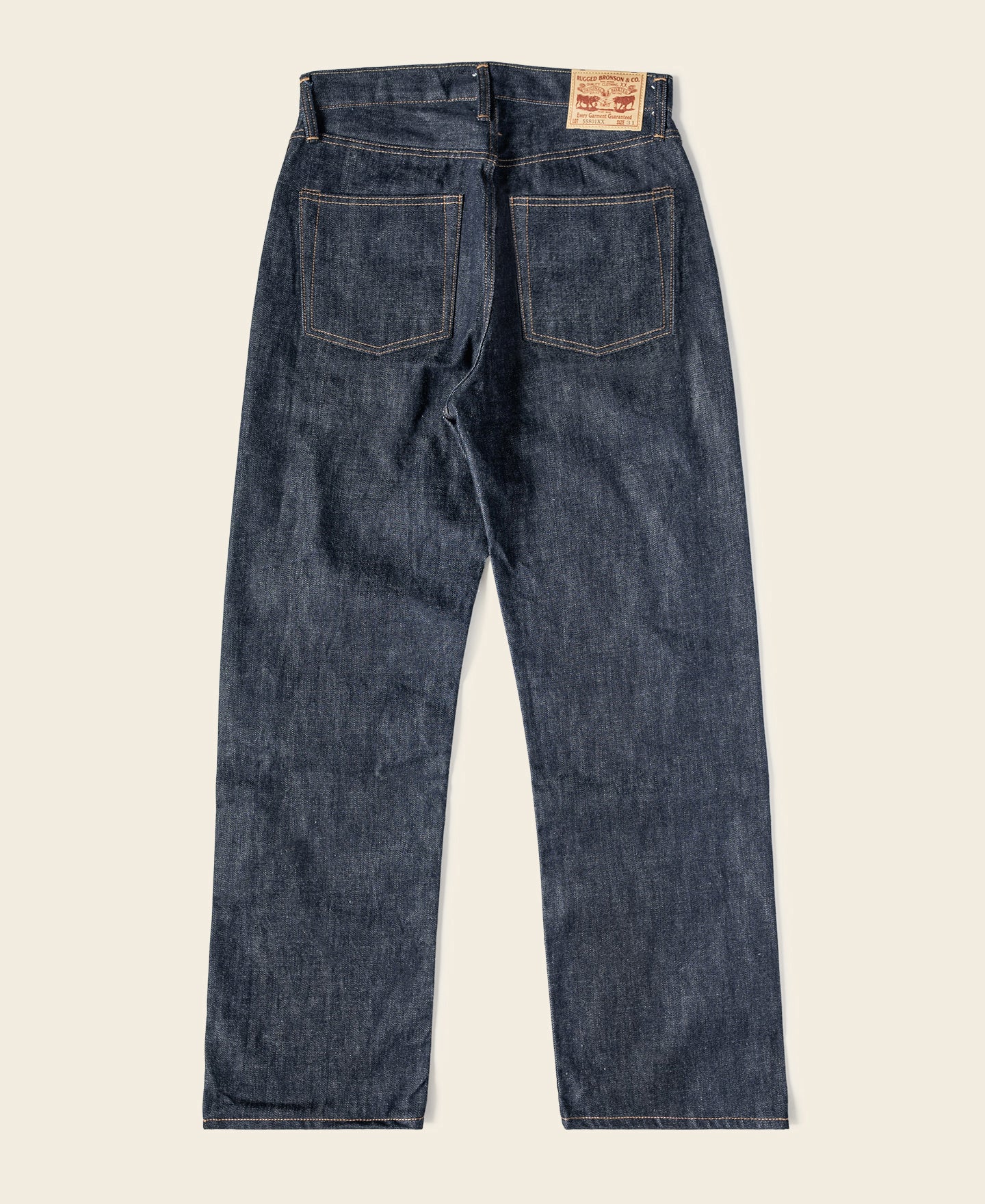 Made from 13.5 oz. selvedge denim (after one wash, it will reach about 14.5 oz.), 5-pocket style, these jeans feature a straight fit with a mid-high rise. Faithfully restore the details of the original version.