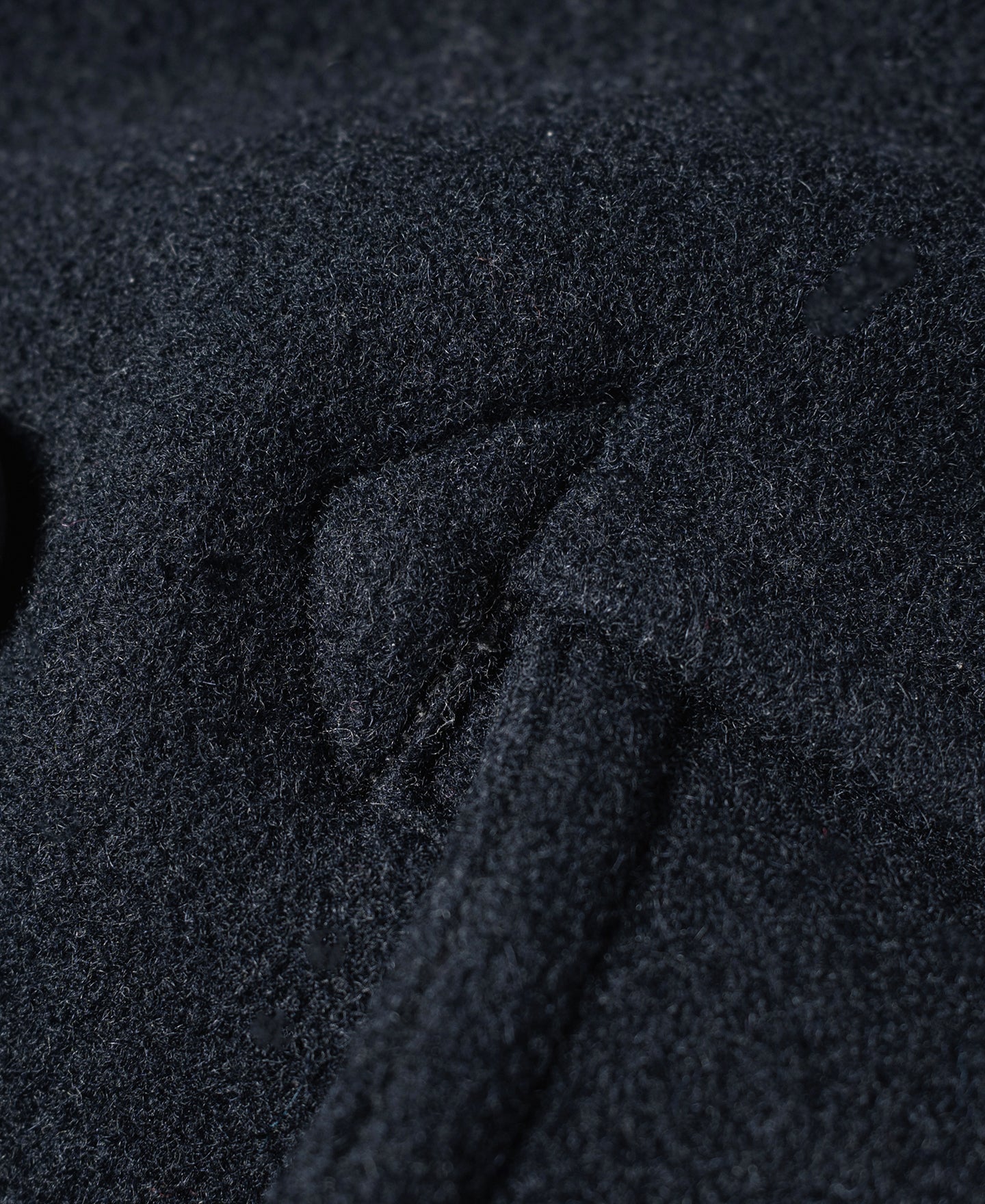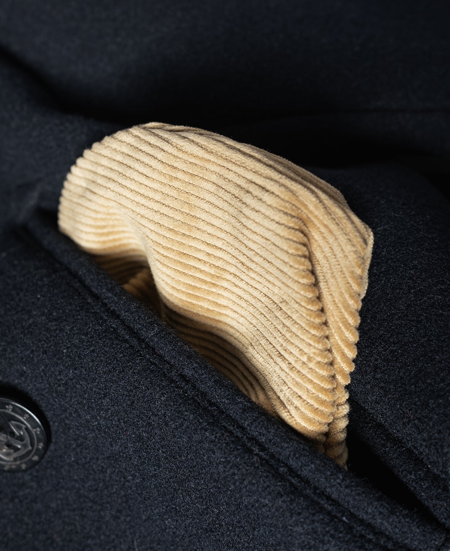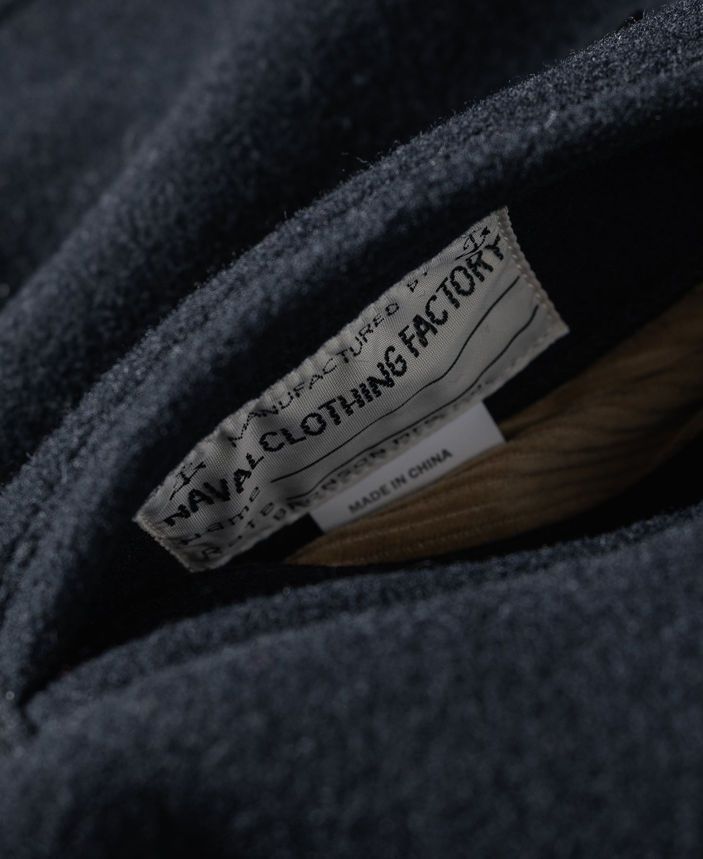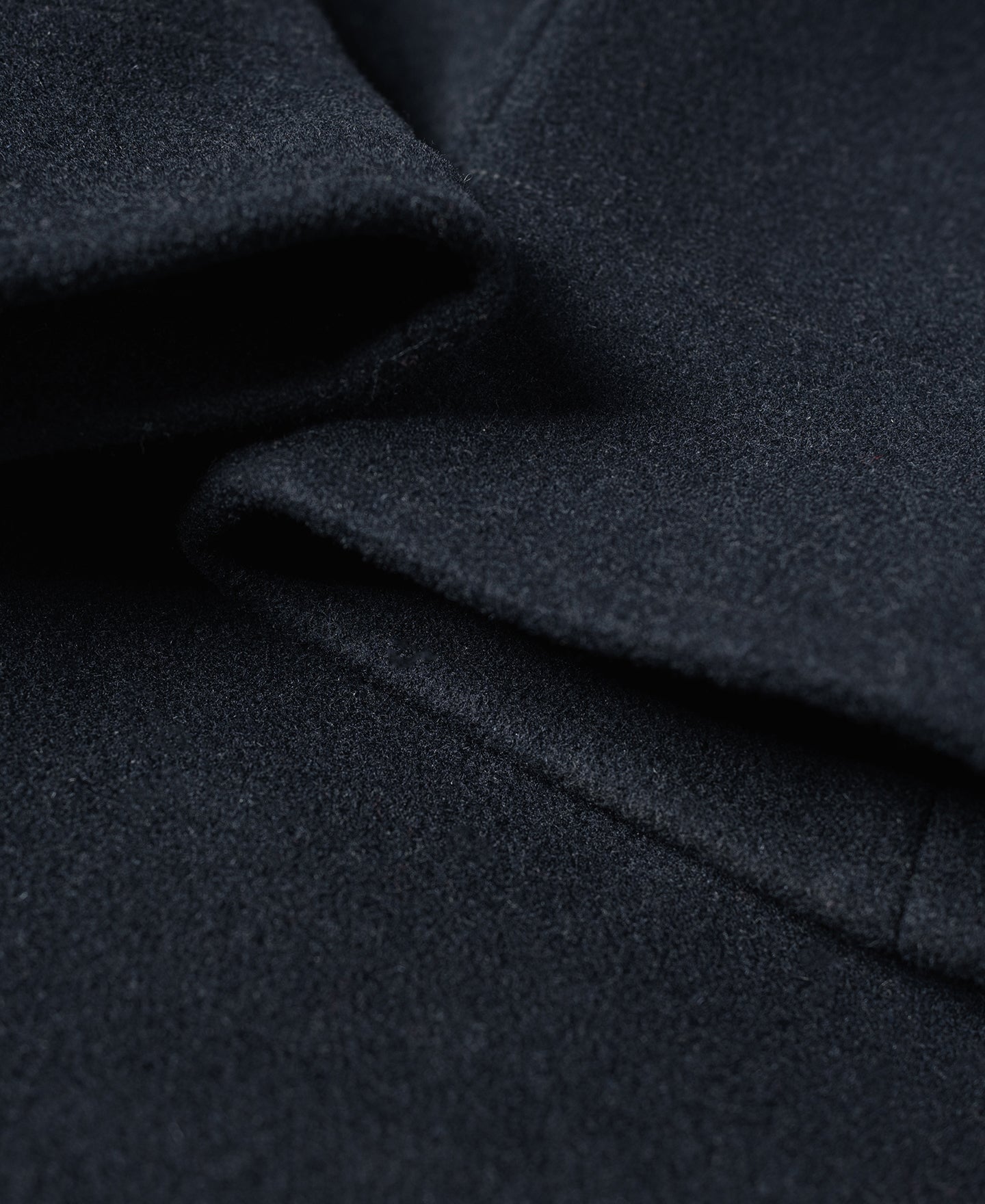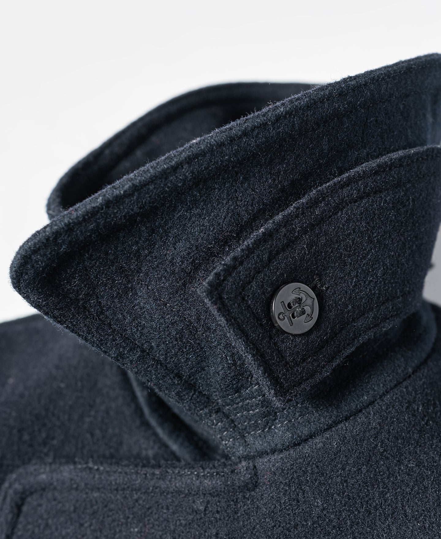 Inspired by the 1913 U.S. Navy Peacoat, this double-breasted overcoat is crafted from a dense 1000g (36 oz) pure wool melton, delivering exceptional warmth and structure. The broad convertible collar folds neatly for a classic silhouette and can be turned up and secured for added protection against harsh winds. A tailored fit ensures a secure, enveloping feel while maintaining the iconic naval profile. The practical length and rear vent offer ease of movement, balancing functionality and refinement. Finished with hand-sewn, oversized thirteen-star horn buttons for authentic military character, this coat embodies both durability and timeless style.