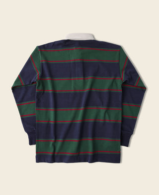 Classic Fit Striped Jersey Rugby Shirt - Green/Navy/Red