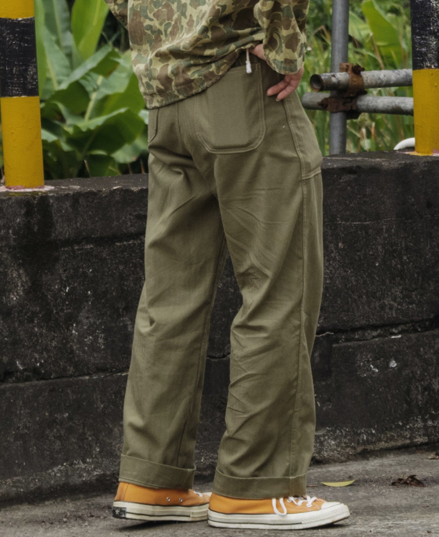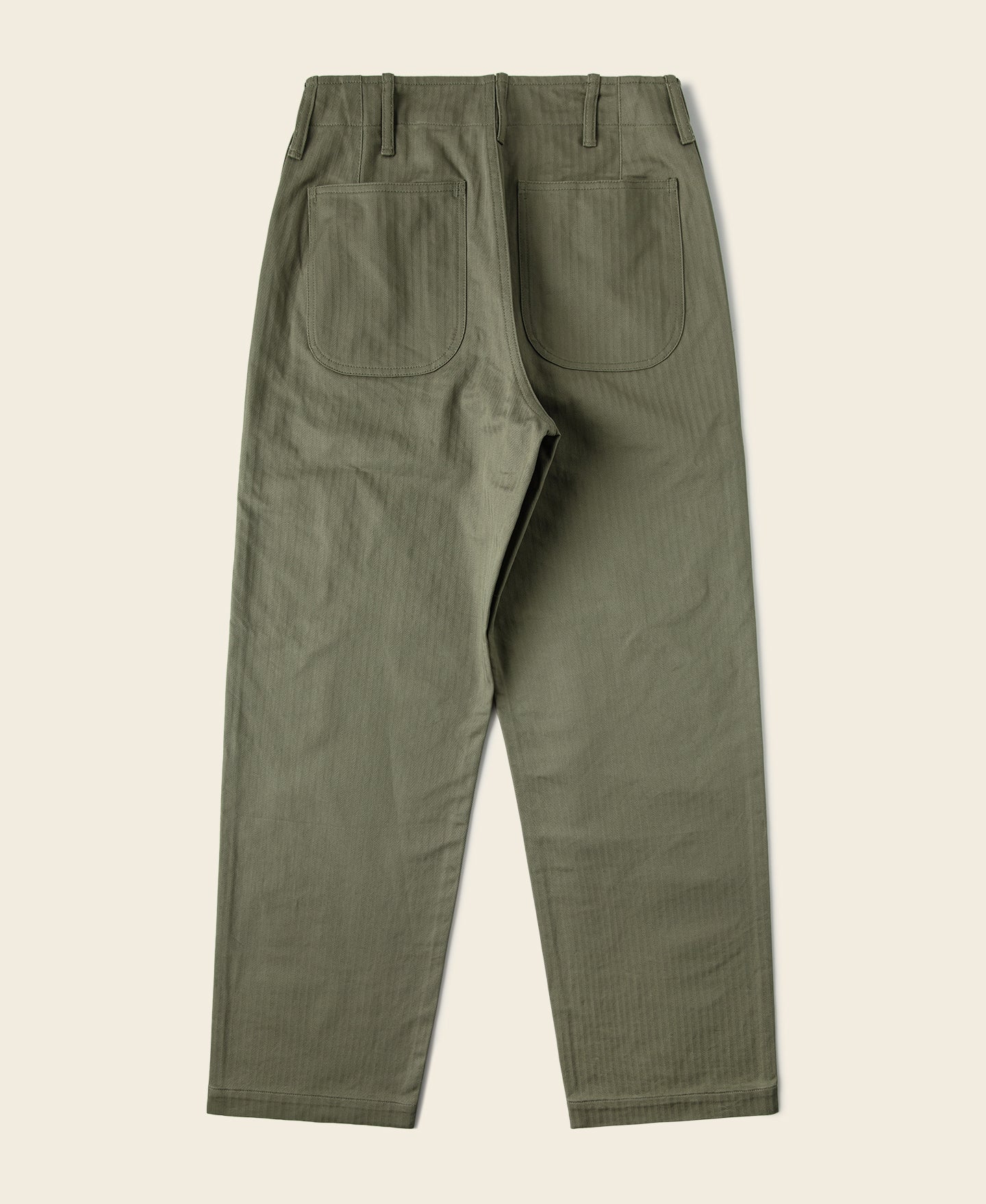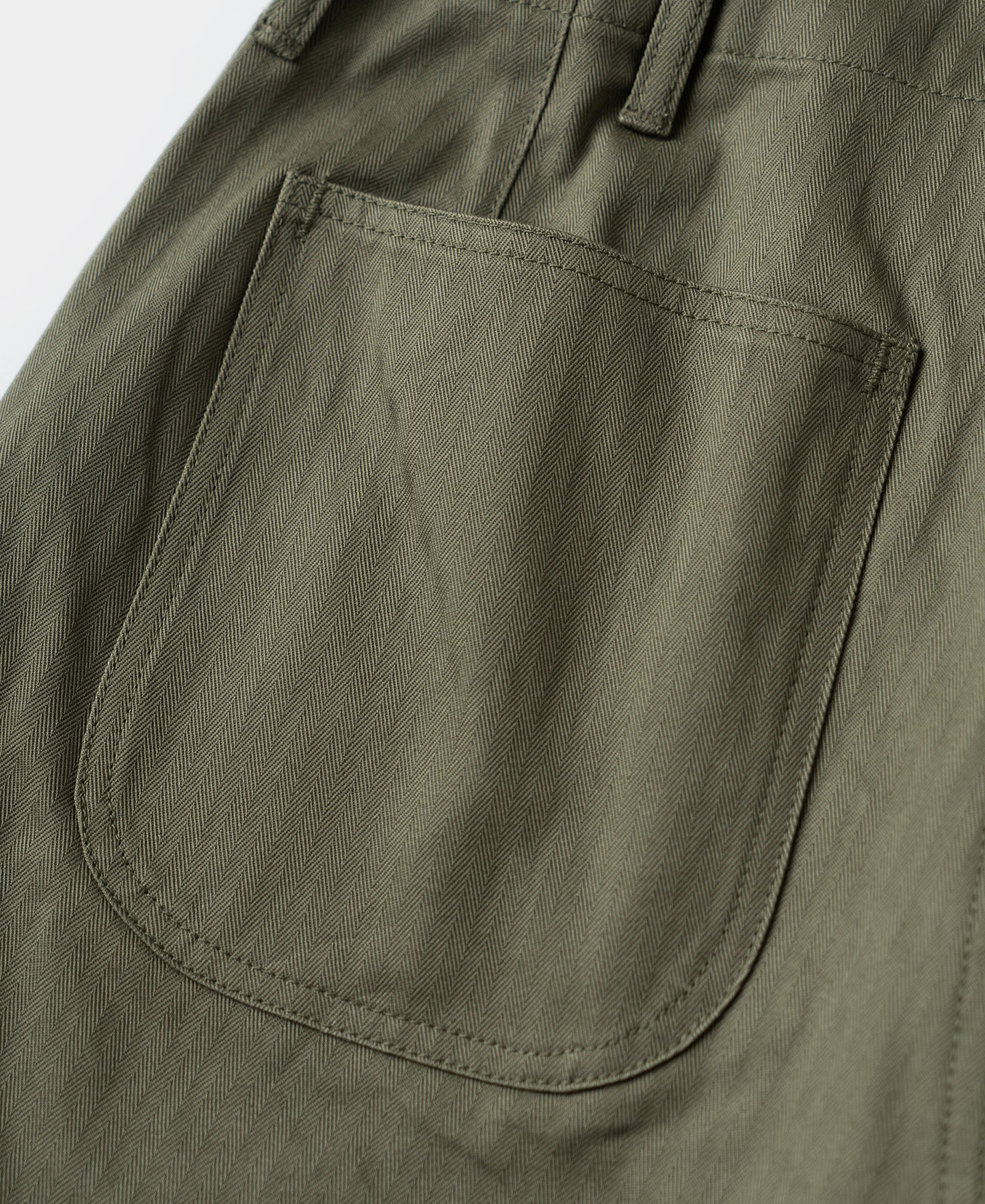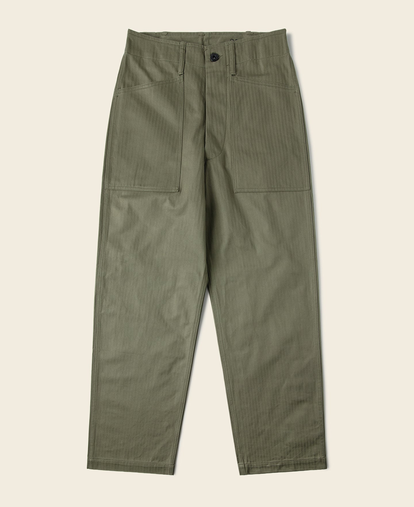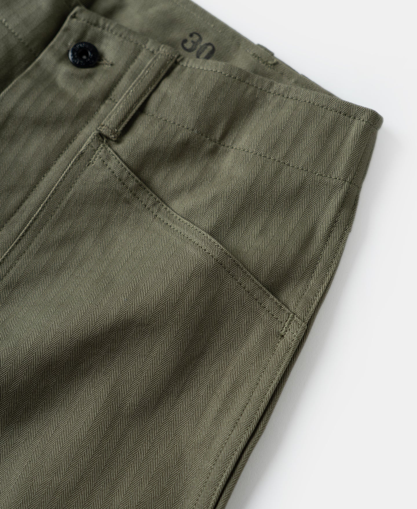 The early P-41 Utility Trousers had a patch pocket design, which was soon changed to a front angled pocket design, similar to the USN N-3 HBT Trousers, with a more straightforward design.